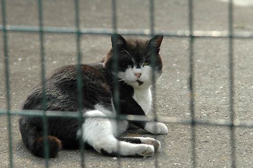 この猫さんは多分飼い猫さん、だって体格良すぎるもんね(笑 柵の向こうで大きな物体が地面でゴロゴロしていました。
