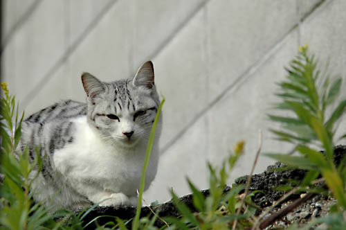 この猫さんは1度は逃げられちゃったんだけど、どうやら私が気になったらしく隣の空き地に居た私を遠回りして見に来たらしい、なかなかの強面さん。