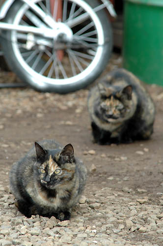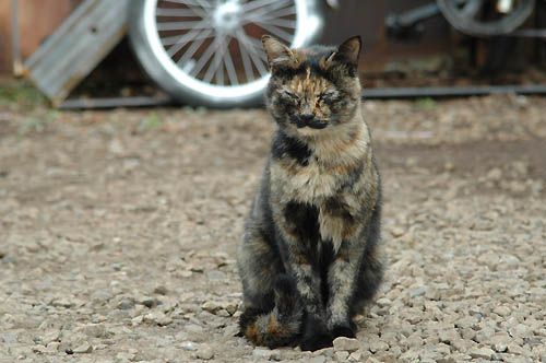 これも日曜の写真で、とても愛らしいサビ猫の親子。 この猫たちもお休み中の工場の門扉の中に居た。 ちょっと暗かったので1匹にしかピントが合わせられなかった。