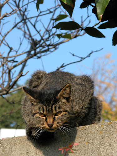 発令中 「誰だ、おいらの縄張りに入って来たのは~」 「猫さん、すいません。私決して怪しい者じゃありませんので」 「どうだかなぁ」 「いえ、あの、、、、お写真1枚撮らせていただければ帰りますから」 「そんな事言うて、それ何枚目や!」 「あっ、ばれてました?」 「まぁ、せいぜい腕磨きや」