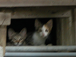 まだ若そうにも見えるけれど、彼女はお母さん。 立派なおっぱいが見えるね。 多分この子猫達が子供だと思うんだ。 暗い床下から、小さなお顔がこっちを見てた。 人様に見せられる写真じゃないけど 耳の大きさが伝わるかしら。。。